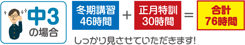 また、受験を控えた高3生、中3生の皆さんと、あと4ヶ月で中学ご入学となる小6のお子様には、この冬期講習は短いながらも大切な時期となっております。高3、中3の皆様は最後の追い込みで正月特訓を準備させていただいております。