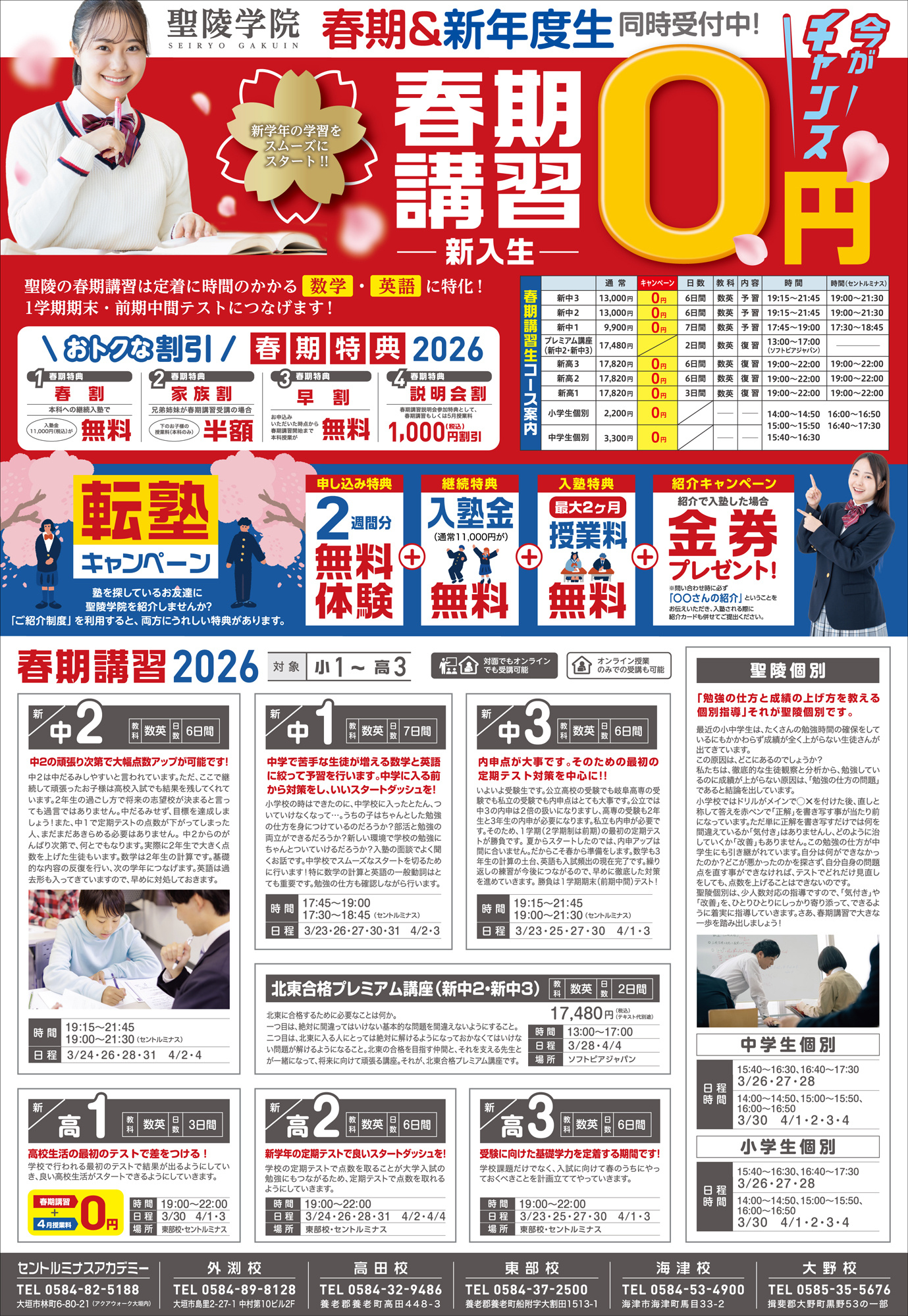 聖陵個別は、少人数対応の指導ですので、「気付き」や「改善」を、ひとりひとりにしっかり寄り添って、できるように着実に指導していきます。さあ、春期講習で大きな一歩を踏み出しましょう!